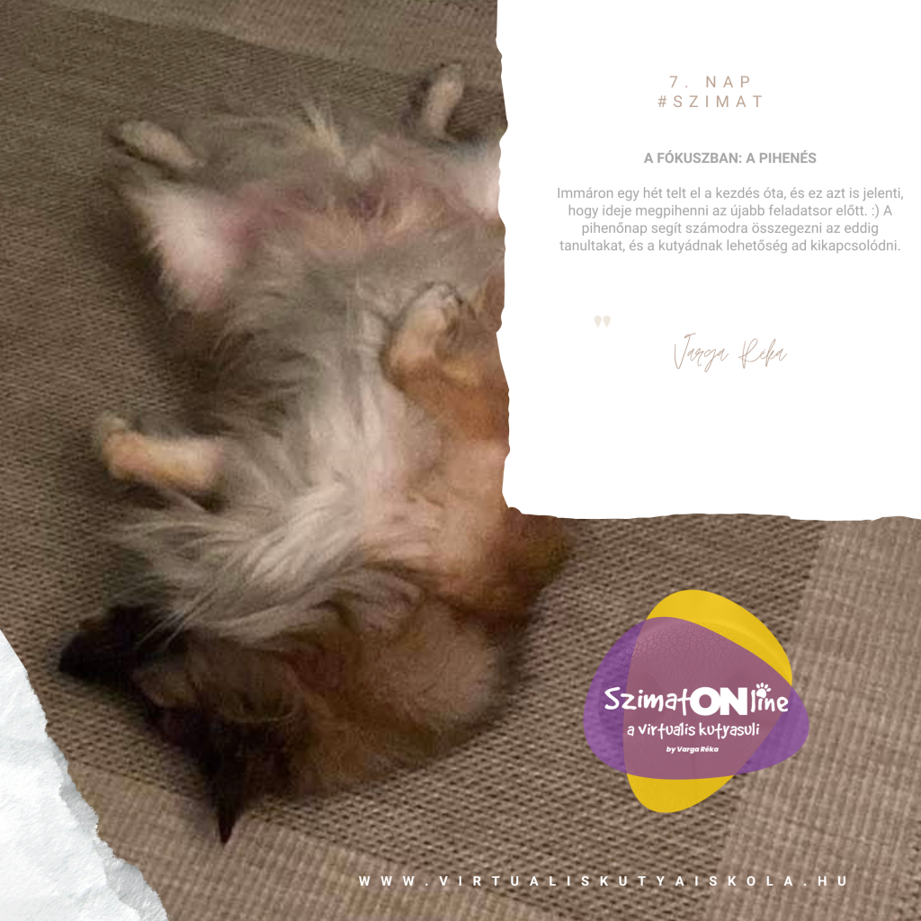 Immáron egy hét telt el a kezdés óta, és ez azt is jelenti, hogy ideje megpihenni az újabb feladatsor előtt. 🙂 A pihenőnap segít számodra összegezni az eddig tanultakat, és a kutyádnak lehetőség ad kikapcsolódni.